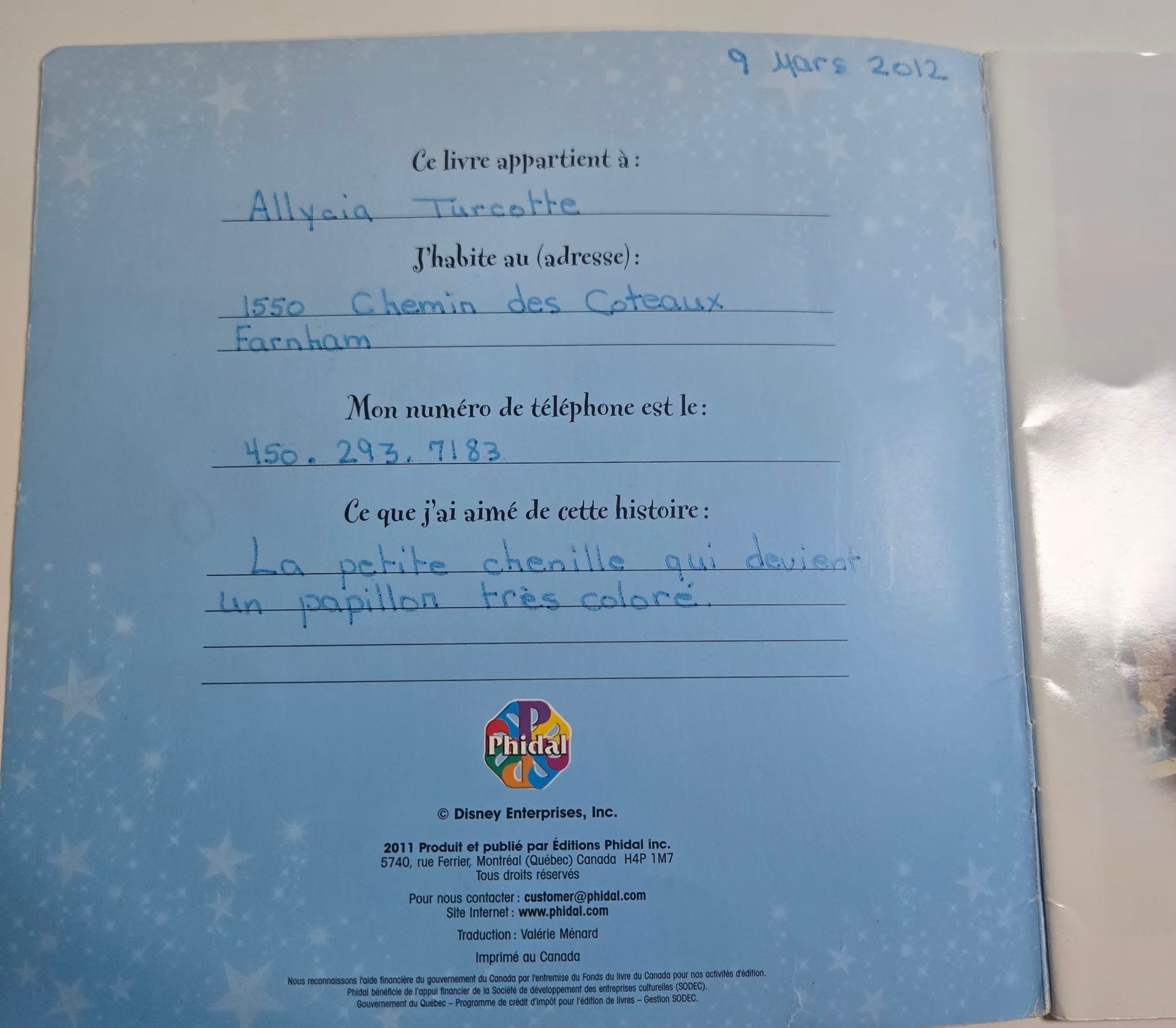Blanche-Neige et la magie de l'amitié *écriture sur la première page*